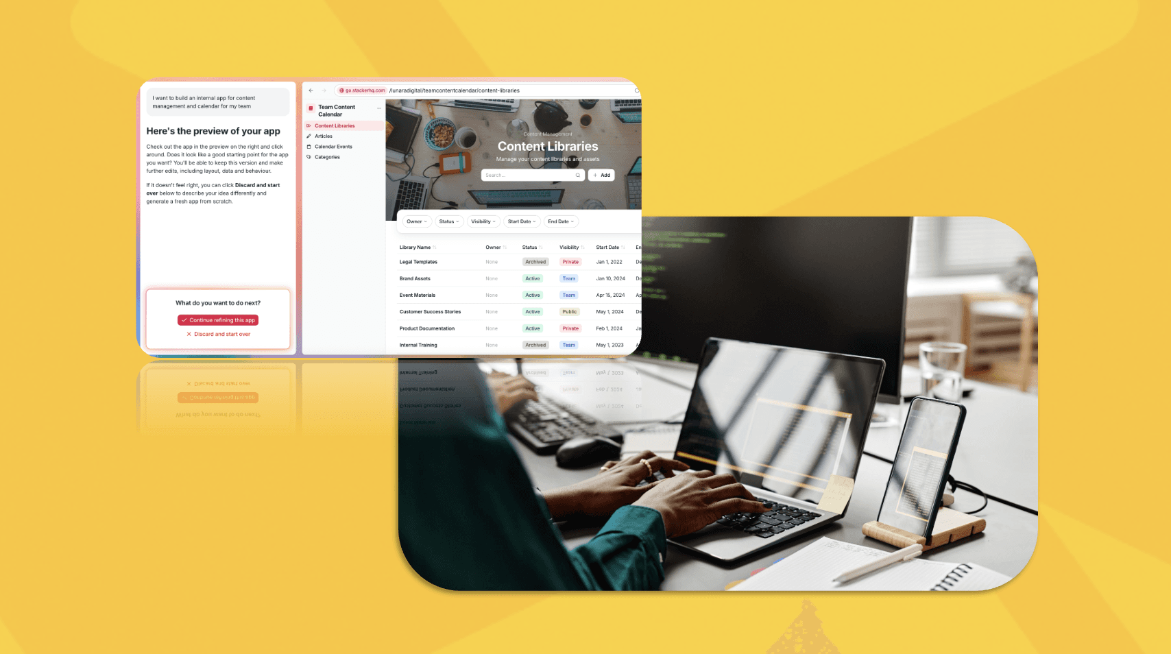 Stacker adds AI-guided building, an integrated data layer, and detailed permissions that support more advanced workflows.