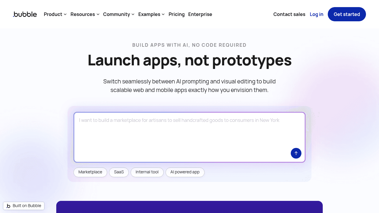 Bubble is a full-stack, AI-powered no-code platform that manages every layer of a web application, including visual programming, front-end design, an integrated back end and database, and API integrations.