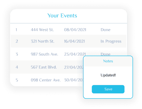 Customers can login to the portal to update details of their events if necessary and DJs can see their upcoming bookings and what they will need for the event.